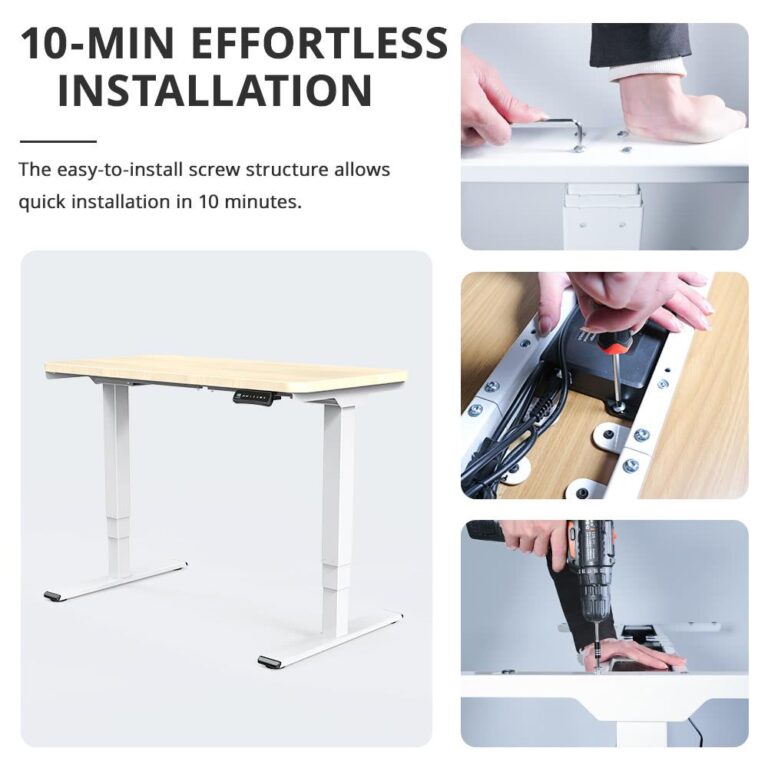 The Electric Adjustable Table as an innovative solution for workspace comfort and efficiency. It highlights its ability to revolutionize work experiences by seamlessly combining functionality and style, replacing static desks with a customizable, ergonomic surface that enhances productivity and comfort. This table is presented as the ideal addition for a modern workplace, reflecting the future of work.